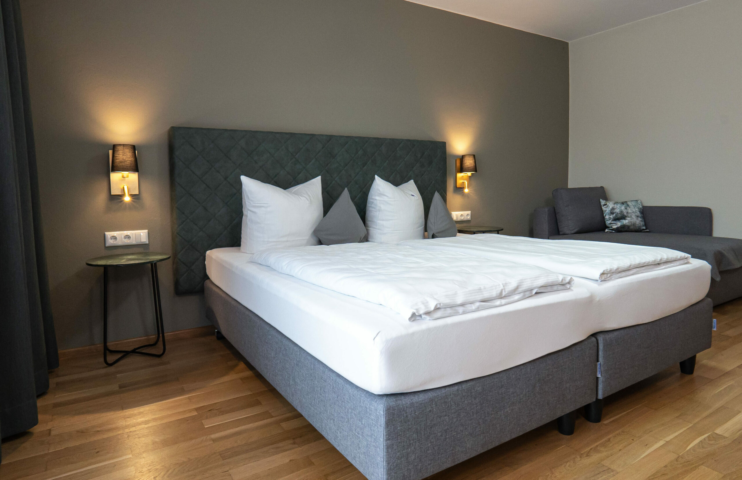 Das gemütlich eingerichtete Zimmer (ca. 22 m²) verfügt über TV und kostenloses WLAN. Auf der Schlafcouch hat eine weitere Person Platz – Preis auf Anfrage. Mit Seeblick.