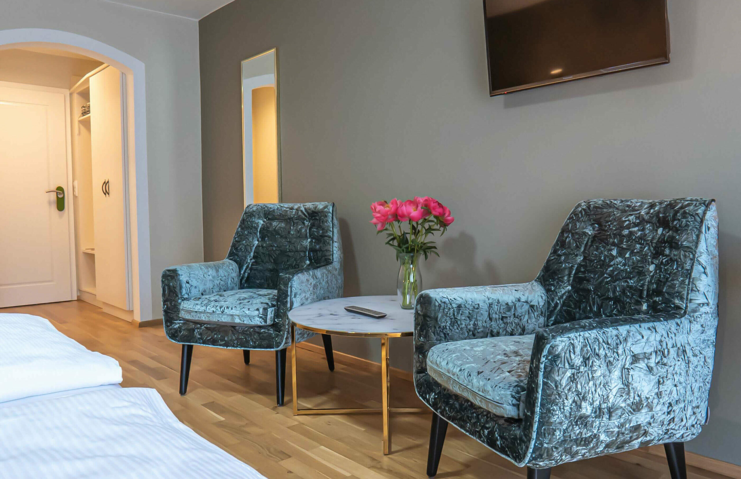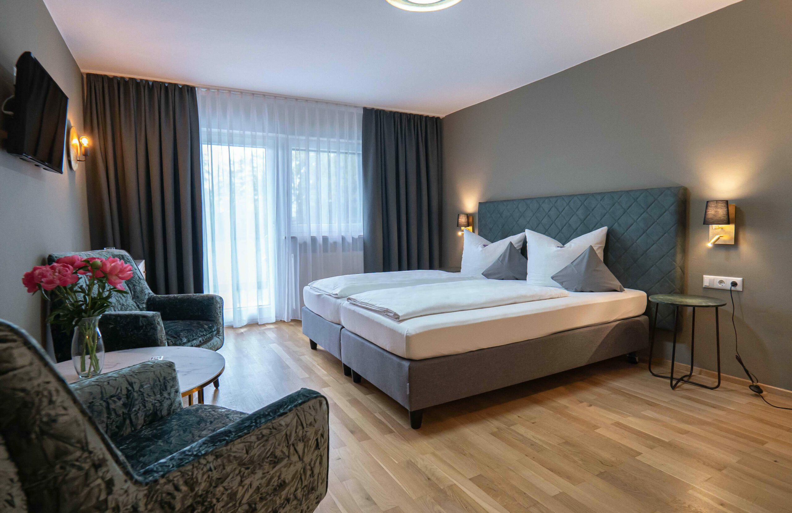 Das gemütlich eingerichtete Zimmer (ca. 19 m²) verfügt über einen Balkon, TV und kostenloses WLAN.
